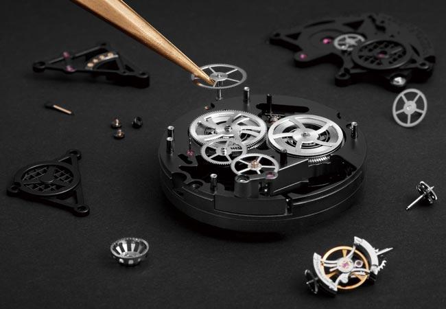 此外,廠方也特別在恆動小秒盤下方,加裝一個與陀飛輪相同轉速(也就是30秒)的同心圓指示盤,讓配戴者得知陀飛輪轉動的速率。而位於機芯夾板上方的扇形六日動力儲存顯示功能,透過齒輪組連接第三個發條盒,可精準顯示發條盒內的動能。