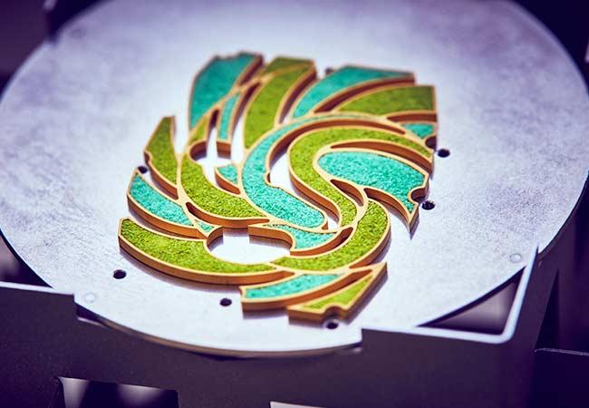 在彩糖之外的黑灰色鏤空面盤部分則是經Titalyt等離子技術處理過的鈦金屬,在硬度、耐磨損、抗腐蝕的性能方面,都比原先的鈦金屬更好。而且還可以讓表面呈現出如絲緞般的視覺美感,一舉兩得。