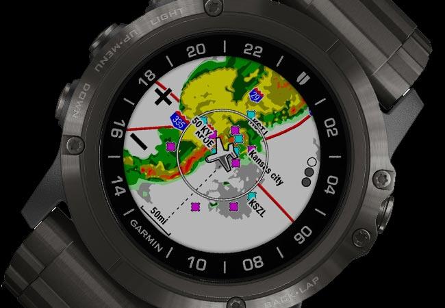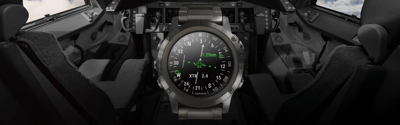 支援UTC多重時區選擇,搭載全球航空導航系統與完整機場資料庫,運用全彩動態地圖疊加資訊,機場、道路、水域等資訊無一遺漏,提供天氣、航點參考和飛行數據參考;與相容的手機裝置連線更可取得NEXRAD雷達氣象圖、METARs航空例行天氣報告、TAFs機場天氣預報;除了在腕錶上新增航點和路線外,也可透過Garmin Pilot飛航應用程式同步傳輸飛行計畫;腕錶更可偵測飛機的高度變化自動啟用日誌功能;每趟飛行皆可於面盤自行編輯專屬於此次飛行的機翼編號,不僅便利飛行員完整收納航程紀錄,也成為錶主獨一無二的紀念顯示。內建脈搏血氧感測功能,顯示體內血氧飽和度,搭配腕式心率全天候紀錄生理數據。