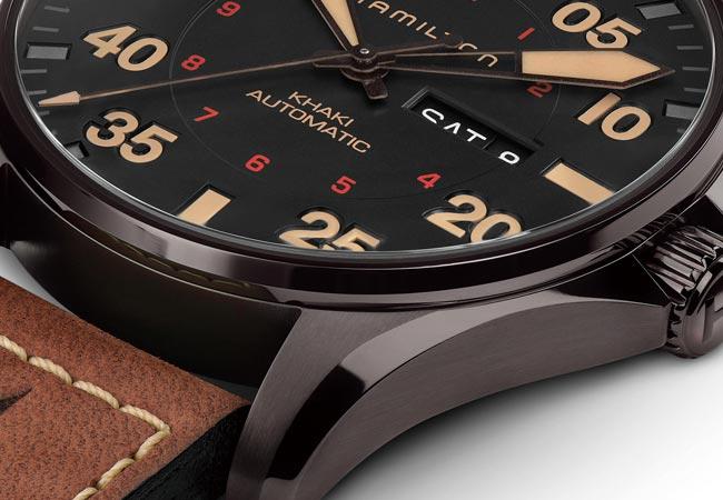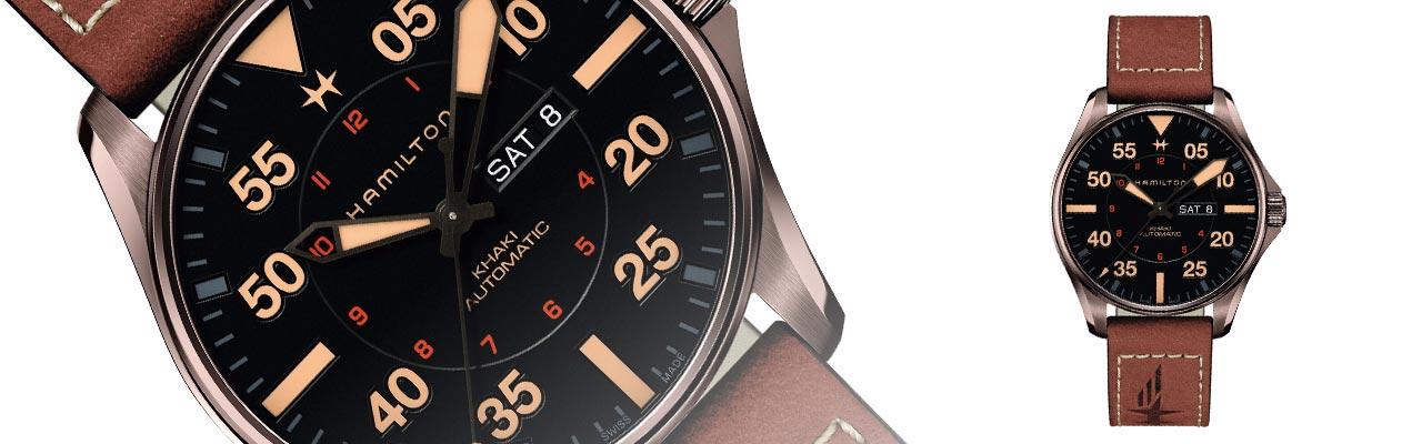 大飛行員雙曆腕錶大約是漢米爾頓HAMILTON這次百年飛行紀念的最終壓軸,秉承美系飛行軍錶血脈,從面盤設計、錶殼造型到錶帶質感無不展露出濃濃的復古軍風。面盤時分盤的雙層式設計乃是取經自二戰時期軍用戰鬥機儀表面盤。
