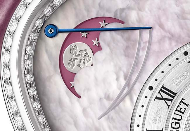 BREGUET寶璣歷史傳統中最值得驕傲的系列『Reine de Naples那不勒斯王后系列』推出全新8905情人節限量特別款:精緻面盤裝飾著粉紅色與紫紅色調的珍珠母貝,耀眼美鑽環抱錶圈,華麗細節美不勝收。內在搭載自動上鍊機芯,具備月相顯示功能,表裡皆美,令人讚嘆,充分表現女性的優雅氣質。寶璣全新限量那不勒斯王后系列腕錶造型獨樹一格,渾圓柔美的動人曲線、略帶修長的鵝蛋形錶殼,一見傾心。