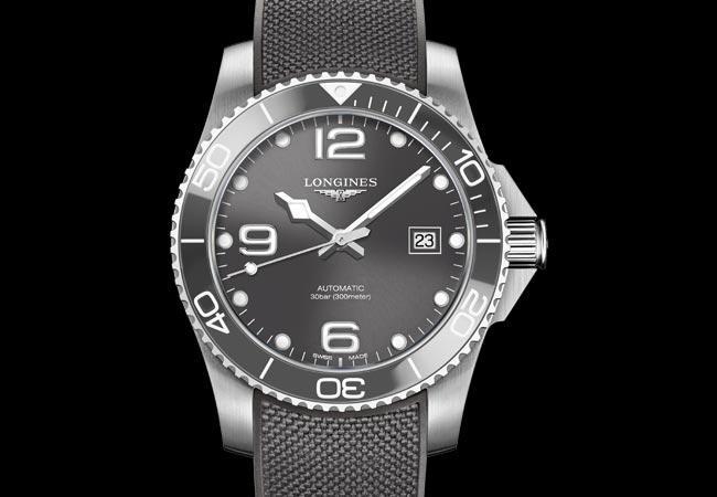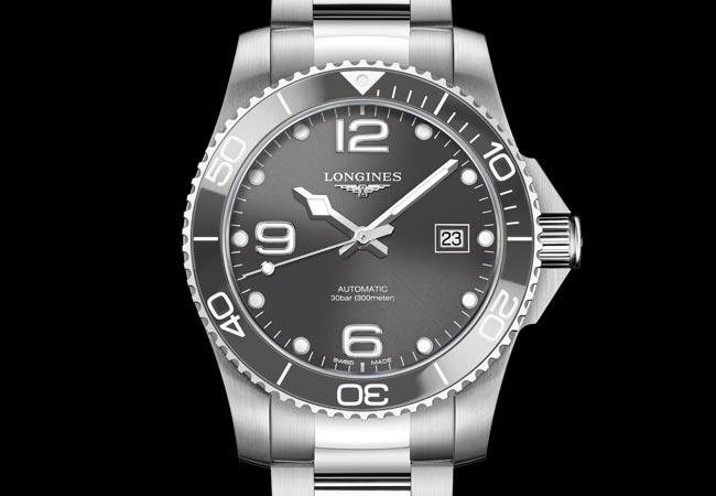 全新HydroConquest深海征服者系列提供高科技創新陶瓷錶圈設計;此款嵌入式的陶瓷錶圈具備絕佳防刮特性,其顏色與面盤顏色相同,並讓此系列的全新現代設計與運動風格完美融合。明亮的指針和時標飾有Super-LumiNova®夜光塗料,並與全新灰色、黑色與藍色太陽飾紋面盤的深色系調構成顯眼、清晰的對比。錶帶也經過升級,不僅顏色與面盤一致,設計符合人體工學且戴起來更加舒適;金屬錶鏈則結合拋光與磨砂不鏽鋼材質,多種細節呈現出讓人驚豔不已的外觀。