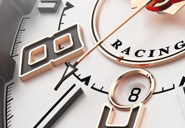 Vanguard Racing採用精緻的弧形表背,並配備精鋼或玫瑰金的45毫米Vanguard酒桶形錶殼。細看表盤,立體數字時標和內表圈令表盤層次更顯分明,吸引配戴者的目光。棒形時標仿如一級方程式的起點線,取代了品牌傳統的阿拉伯數字時標。此外,Vanguard Racing配備突出的表冠護罩,9時位置結合相襯的後視鏡設計,突顯與別不同的風格。