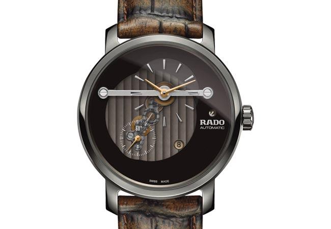 獨一無二的偏心設計,利用層層疊疊相互交錯的圓圈表現時、分、秒和日期之間既互相連結,又獨立存在的時間元素,錶盤正面更可直接透視以傳統日內瓦條紋打磨的細緻裝飾機芯,一眼即可將機芯齒輪的精妙運作盡收眼底,各個獨立的元素交融,共同構成和諧且完整的一只精緻腕錶。極具藝術性的面盤配置,忠實呈現RADO瑞士雷達表的設計美學。