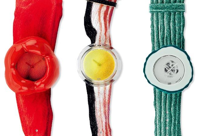 盤點「Swatch Loves Art」限定快閃店所展出的經典錶款,可感受Swatch不設限的態度,與藝術家們的創意不斷地創造出許多引領潮流的精彩藝術作品,現場展出1991年由奧地利藝術家Alfred Hofkunst以辣椒、培根、黃瓜為創意發想設計的錶款,突破傳統腕錶的刻板形狀,將錶盤體現出雕塑感,以完全不規則的大膽造型與色彩,充分展現Swatch在20多年前就引領潮流的先鋒嗅覺。