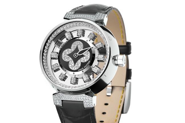 雖然原理相同,但新機芯更為空靈,顯示時間的方塊如同懸浮在半空中。機件位於錶殼中心,夾在兩片藍寶石水晶間,在標誌下可見經典LV符號(男錶)或一圓一尖的兩個重疊Monogram花朵圖案(女錶)。方塊彷彿化身衛星,飄浮在機芯和錶殼間。機芯的隱藏面和自動盤都可透過透明錶底一覽無遺。