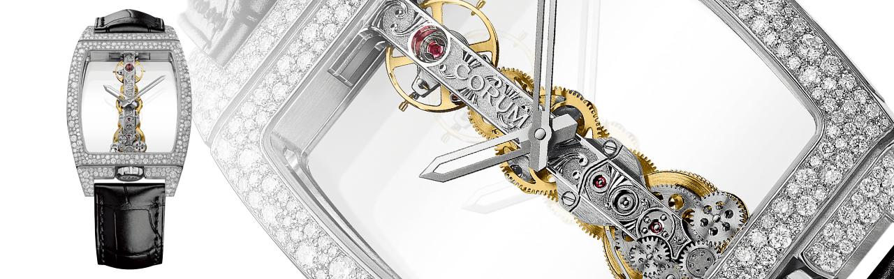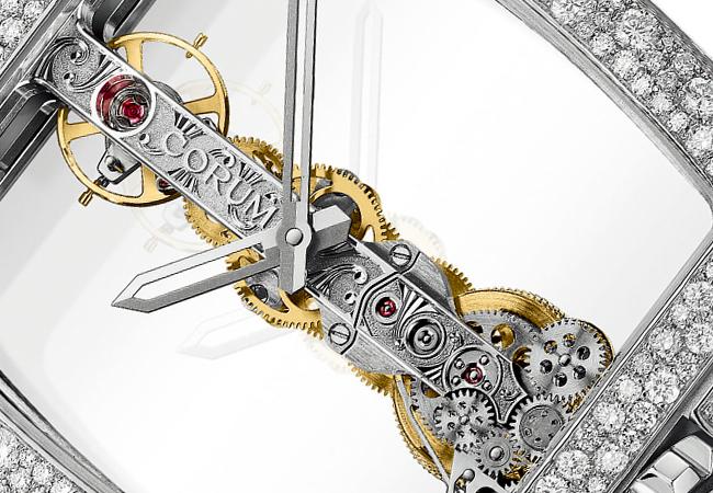 珠寶的加持總能為鐘錶增添奢華,尤其高難度的工藝技法。崑崙CORUM這款錶除搭載垂直結構的CO113手動上鍊機芯,以鏤空的通透效果和絕美金橋輪廓呈現迷人視感外,酒桶形錶殼更以特殊的雪花鑲嵌工藝裝飾滿滿白鑽。