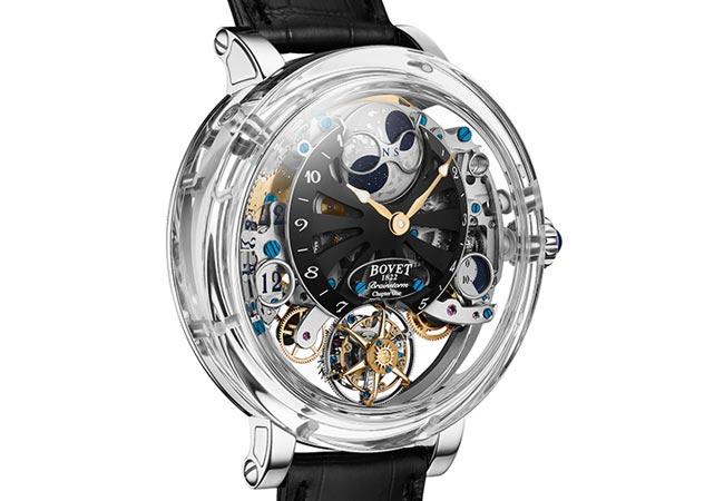 具備飛行陀飛輪,立體月像、大日期視窗,以及長達十日動力儲存的複雜腕錶。今次加入藍寶石錶殼,結構更加通透。38.5mm/藍寶石水晶/參考價NTD2,890,000。