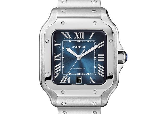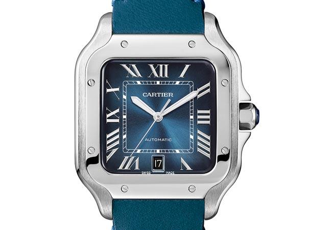 藍色面盤的加入是Santos系列首度嘗試,搭上近年藍面錶風潮,向流行靠攏。此面盤色調漸變,由中央往外漸深。39.8mm/不鏽鋼/參考價約NTD 211,000