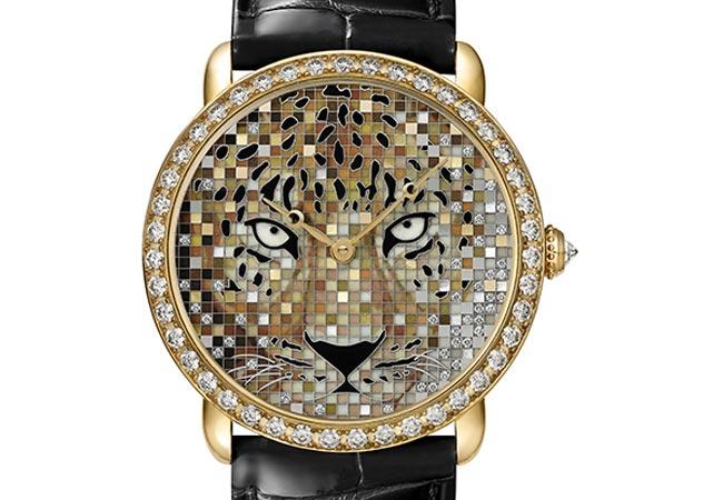 卡地亞Rotonde de Cartier Panthère珍木細工鑲嵌美洲豹腕錶