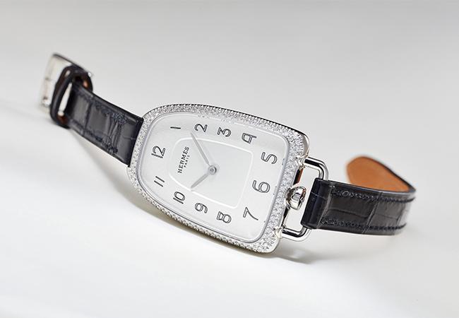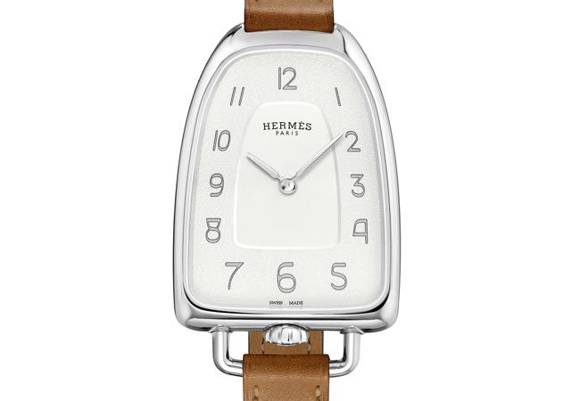 設計師Ini Archibong首次和愛馬仕合作,由愛馬仕創作珍藏館汲取靈感後,創造出這款外型極似馬蹬的作品,錶殼線條呈圓弧流線,符合人體工學。40.8x26mm/不鏽鋼/參考價NTD 121,600