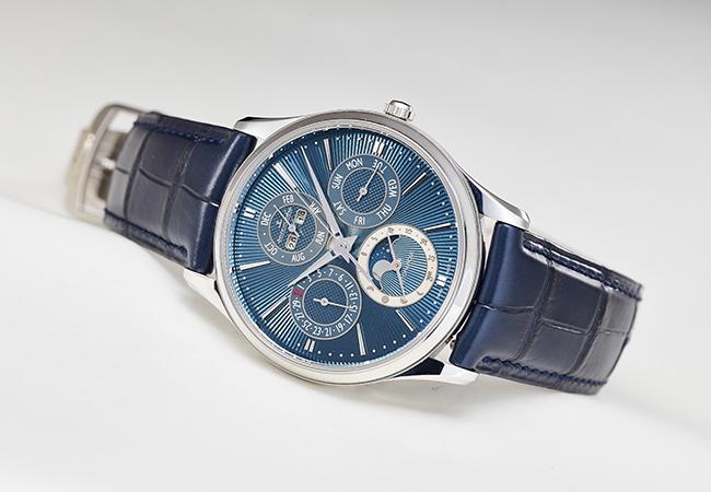 本款萬年曆是積家的最新款式,設有四個錶盤。位於六點鐘位置的月相視窗,周圍具有立體的月齡數字與陰晴圓缺的圖案;十二點鐘位置的月份顯示內,還具有西元年份顯示。內部的925自動機芯,動能提升至70小時。39mm/18K白金/限量100只/參考價NTD 1,770,000