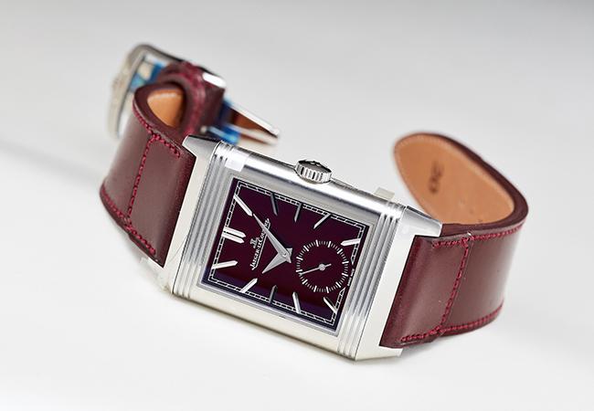 雖然今年積家是以Master系列為主軸,但是翻轉系列仍有推出部分新款式,這款具有迷人酒紅色面盤的小秒針腕錶, 搭載822/2手上鍊機芯,搭配酒紅色的皮錶帶。45.6 x27.4mm/不鏽鋼/參考價NTD 254,000