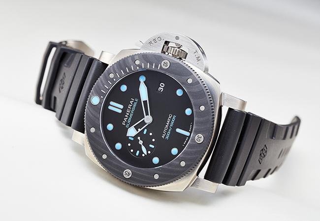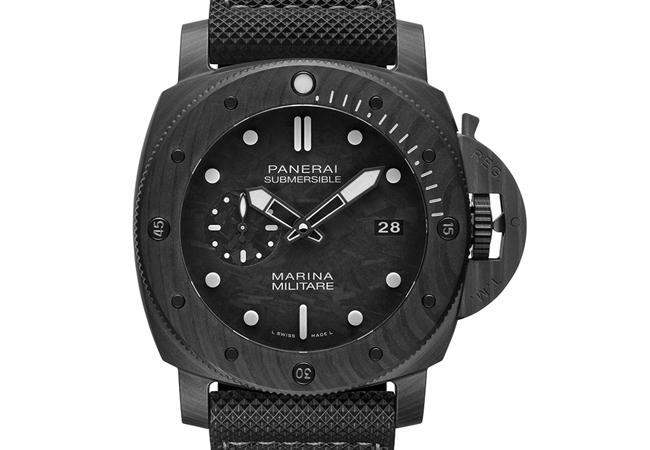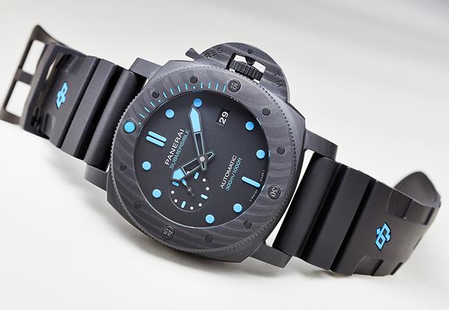 今年Submersible系列大量採用Carbotech碳纖維複合材料,這是在碳纖維薄片加入高科技聚合物PEEK (聚醚醚酮),以特定溫度經高壓壓縮而成,擁有輕盈堅固的特性。本款腕錶搭載P.9010自動機芯,但42mm版本,則是使用纖薄的OP XXXIV自動機芯。型號PAM01616/47mm/Carbotech碳纖維/參考價NTD 565,000