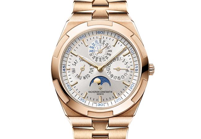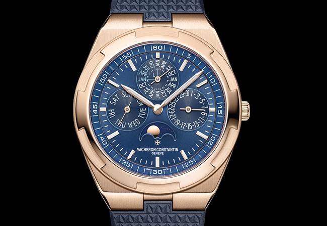 Overseas今年強調超薄與複雜,推出超薄萬年曆。搭配快拆錶帶,可迅速更換皮帶或橡膠錶帶,適合日常生活各種場合。內裝自製1120QP/1自動上鍊機芯,機芯厚度4.05mm,連錶殼厚度8.1mm,瞄準日常配戴需求。41.5mm/18K粉紅金/NTD 2,492,000