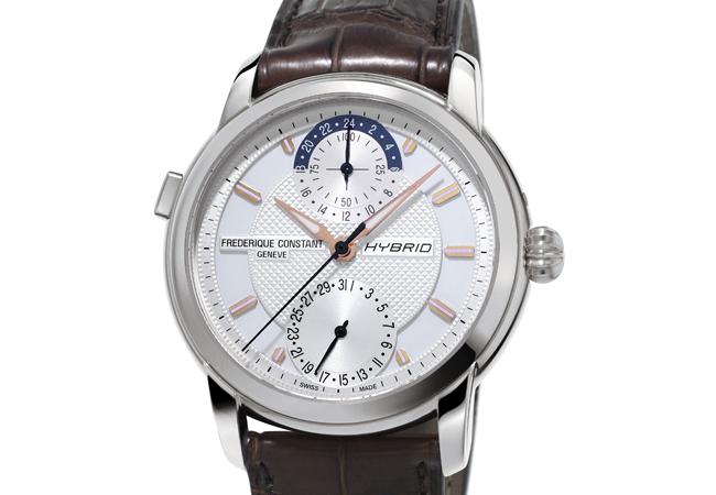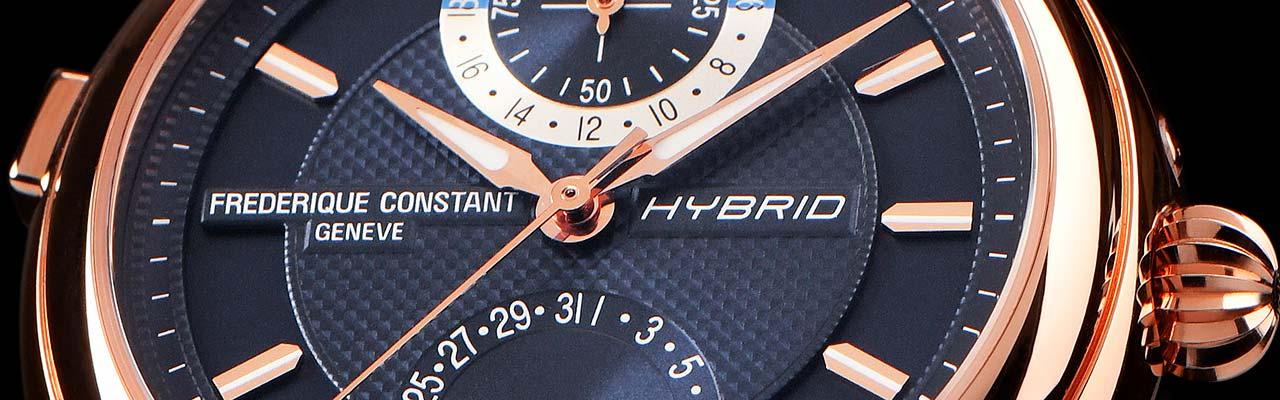 Frederique Constant Hybrid錶廠自製腕錶備有三個新款式和兩種錶盤設計。拋光不鏽鋼及玫瑰包金錶款備有鍍銀錶盤,玫瑰包金不鏽鋼款式則備有海軍藍色錶盤。Hybrid系列搭載FC-750V4H6錶廠自製Hybrid自動上鏈機芯,動力儲存達38小時。智能模組的電池續航時間超過7天,可與從Google Play和Apple Store下載的Hybrid應用程式連結。每次啟動應用程式,所有收集到的數據便會借存於受保護的瑞士雲端伺服器之上。機芯備有精細的鱗紋和日內瓦波狀條紋,錶盤顯示時、分、秒、日期,設有智能連接顯示盤,尺寸為獨特的42毫米。