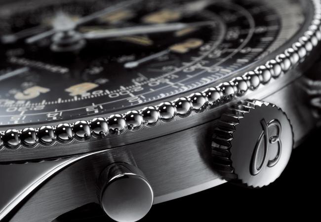 Navitimer 1 Ref. 806 1959航空計時腕錶復刻版搭配圓珠旋轉錶圈,由94顆圓珠製成,數量與1959年的錶款一致。原版Navitimer Ref. 806 航空計時腕錶的生產期間,圓珠數量(錶圈周圍的小刻度)從1950年代初期的125顆至1960年的93顆不等。這可能只是一個小細節,但對於歷史腕錶的愛好者而言,這個細節至關重要。