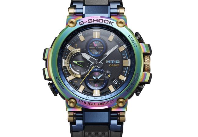 卡西歐計算機株式會社正式宣佈其G-SHOCK耐衝擊手錶系列的最新成員,新款MTG-B1000RB採用彩虹離子電鍍,以紀念MT-G系列手錶誕生20週年,MT-G系列以運用金屬和樹脂的特性而達到耐衝擊而聞名。源自於利用金屬和樹脂的概念,卡西歐於1999年11月首次推出MT-G系列。