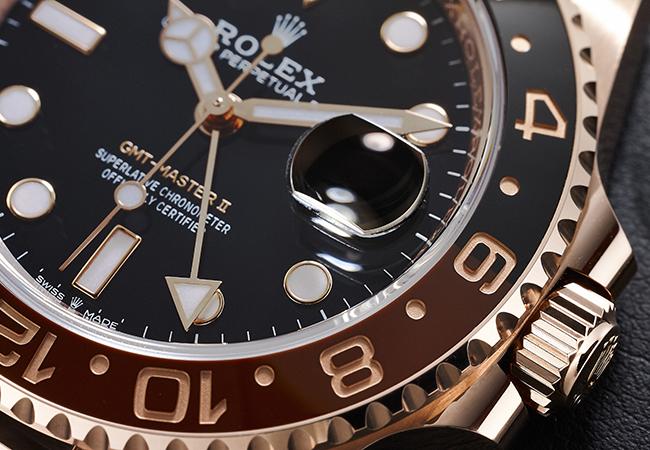 除此之外,過去勞力士在GMT Master、GMT Master II錶款,從未推出過玫瑰金錶款,在2018年,則是一口氣推出使用18ct永恆玫瑰金與18永恆玫瑰金鋼兩款GMT Master II腕錶。過去的玫瑰金材質,容易隨著歲月與環境的洗禮,而慢慢的喪失原有的色澤與光亮;而生活中所時常接觸的化學成分,例如游泳池常添加的氯(消毒之用),更容易使玫瑰金褪色。為了解決此一難題,因此勞力士創造出全新的18ct Everose gold永恆玫瑰金材質,藉由添加一定比例的鉑金材質(約2%),讓玫瑰金能永保亮麗的色澤,並且於2005年開始運用在部份生產的錶款之中,因此這兩款GMT Master II腕錶亦是本系列首次使用永恆玫瑰金的錶款。
