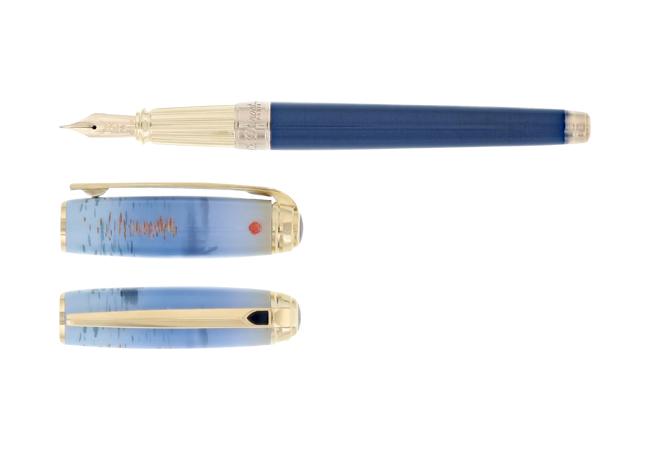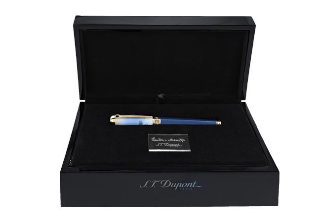 莫內限量系列無疑展現S.T. Dupont大師級的天然漆精湛工藝,憑藉獨特的工藝,此系列強調Ligne 2 打火機和書寫筆具,以藍色天然漆和黃金潤飾,特別的是使用S.T. DUPON中國漆技術,手工層層繪製以達與原畫作相同的顏色。在《印象・日出》中我們可以感受到太陽在一個多霧的早晨徐徐而升,那暫時朦朧而嬌柔的藍海在晨曦的籠罩下,呈現出橙黃色的太陽,天空的微紅被各種色塊所渲染;大膽而凌亂的筆觸展現出霧氣交融的景象。