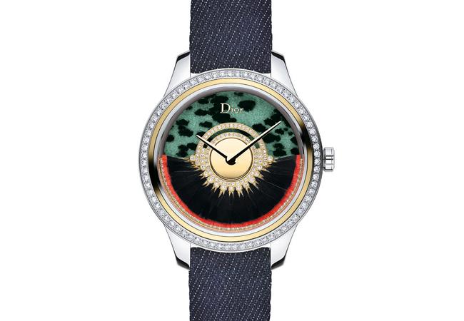 The Dior Grand Bal 系列推出一款36mm錶徑全新腕錶──DIOR GRAND BAL WILD ZOISITE,融合天然寶石的原始風情與黑色羽毛的輕盈柔美。黑色羽毛精細無比地鑲嵌於自動盤上,與閃耀的鑽石並列,兩者完美而和諧地映襯著佈滿自然脈絡軌跡的美麗寶石錶盤。DIOR GRAND BAL WILD ZOISITE搭載Dior專屬 “Dior Inversé 11 1/2”自動上鏈機芯,專利自動盤重現晚禮服裙擺動人的曼妙旋繞美態。此一錶款結合Dior高級訂製服的羽毛製作工藝與傑出製錶技術,匠心獨具、巧奪天工,宛如綴滿鑽石的華美羽毛襯裙,可謂腕間之極致工藝傑作。