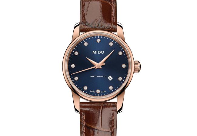 Baroncelli 永恆系列細緻的造型就是以此建築物作為設計靈感來源。MIDO美度表於2016年歡慶Baroncelli 永恆系列問世40週年,該系列集美度表優良精湛的製錶技術於一身,深受廣大消費者的喜愛。全新Baroncelli II Midnight Blue永恆系列午夜藍情侶對錶將經典時計的細緻典雅完美呈現,專為戀人們設計,以永恆設計盡顯MIDO美度表的傳統製錶工藝。採用玫瑰金PVD拋光不鏽鋼圓潤錶殼,女款直徑29毫米,男款直徑38毫米,配以午夜藍太陽放射絲光打磨面盤。12顆璀璨真鑽環繞女款錶盤,猶如12顆耀眼繁星,為午夜藍面盤點綴上神秘奢華魅力。
