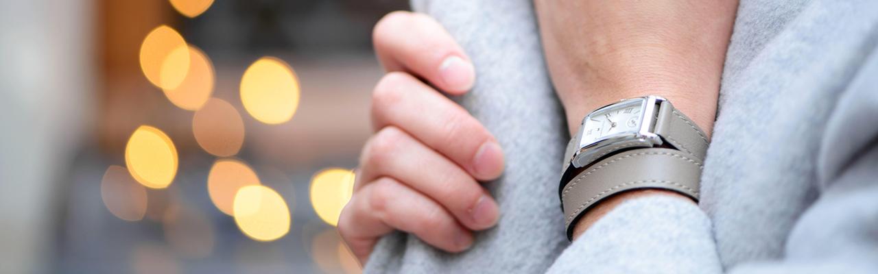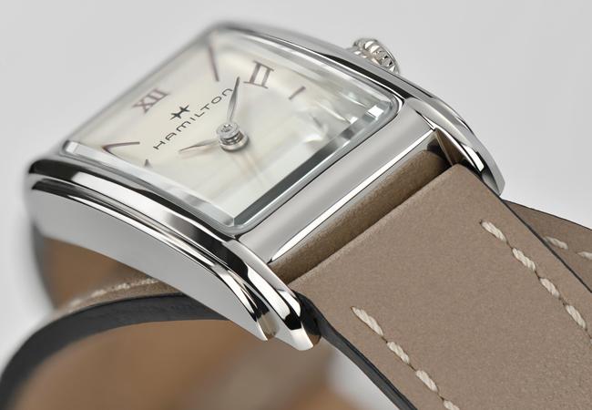 2019年上市ARDMORE系列,透過層次感的律動線條,柔化方型錶殼的剛性風骨,更增添了幾番雅緻的迷人氣息。品牌設計師為近一步體現,都會女性剛柔並濟的時代特寫,面盤羅馬時刻特別融入漢米爾頓獨家賓州松針葉元素,透過魚眼型放射佈局與小秒盤配置,綻放簡潔明快的都會魅力。為讓女性有更多元的配戴變化,錶款配有纏繞錶帶與標準長度錶帶,可供女性選擇。
