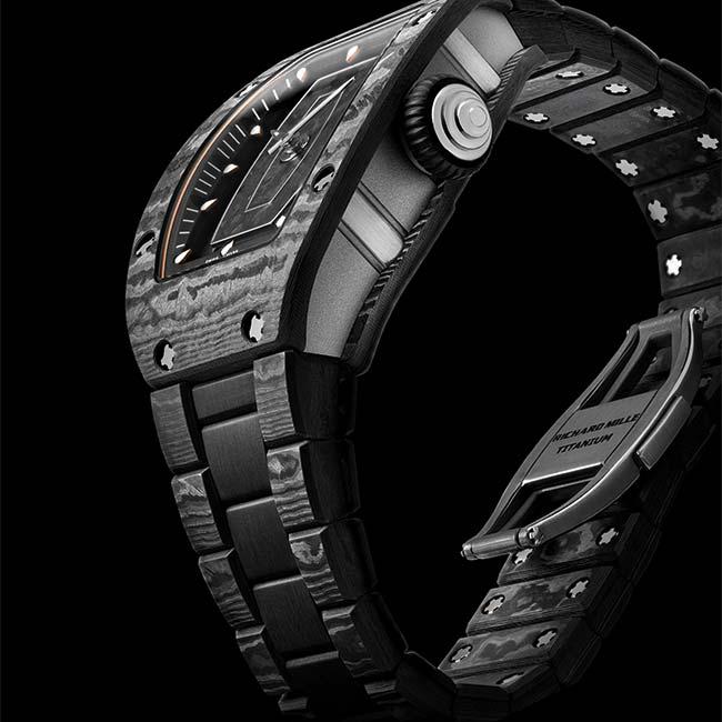 這一凝聚微機械工藝的珠玉之作,結合了令人驚豔的柔軟性和出類拔萃的堅固性,將錶殼的酒桶造型進一步延伸至腕圍四周。而這些材料的結合造就出一款總重量僅為29克的錶鍊。這款錶鍊預計於4月推出,專門搭配RM 07-01 Carbon TPT錶款;它擁有的精密、技術性和優雅出眾的特質,與品牌致力研發的作品特色不謀而合。