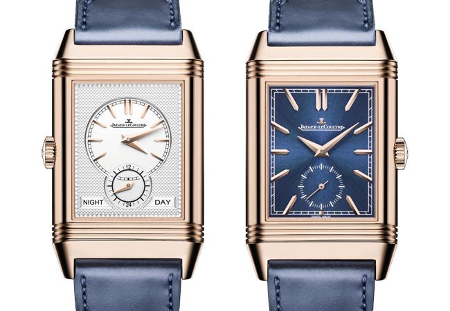 這款腕錶均運用了積家於1994年為Reverso翻轉系列腕錶專門研發的Duo雙時區設計概念。此巧妙設計是大工坊在鐘錶精準性能方面取得重大革新的成果,獲精美機械愛好者的青睞。腕錶的雙面錶盤分別顯示不同時區的時間,卻由同一枚機械機芯驅動,如此精密複雜的積家854A/2型機械機芯,搭載於厚度只有10.3毫米的纖薄錶殼之中。正面錶盤的6時位置設有小秒針,而背面錶盤的晝/夜顯示可讓佩戴者分辨出發地的時間為白天還是黑夜。