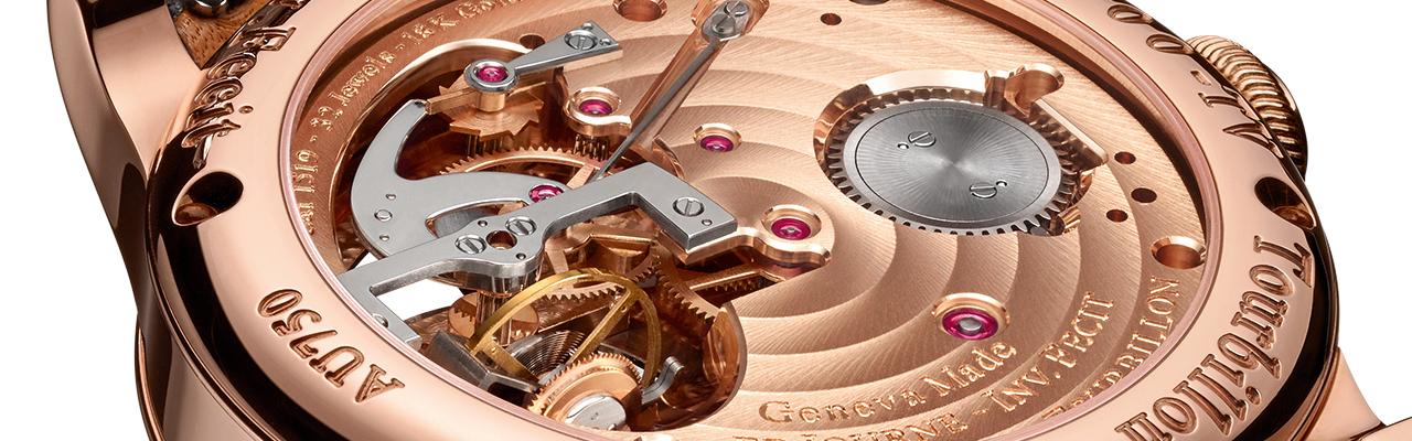 這款帶恒定力裝置和定秒系統的垂直式陀飛輪,每30秒旋轉一圈,這比常見一分鐘一轉的速度更快,在展現出精湛製表工藝的同時兼具令人嘆為觀止的視覺效果。錐形並經鏡面拋光的鋼環包圍著陀飛輪框架,將光線滙聚並照耀精緻複雜的陀飛輪,金光閃爍的機芯面亦柔柔映照著陀飛輪框架。成為表盤一部分的4N玫瑰金橋板飾有巴黎釘紋,而3時位置則有一個品牌首次採用的琺瑯小時盤。Tourbillon Vertical垂直式陀飛輪腕表在12時位置設80小時動力儲存顯示,在6時位置設有小秒針表盤,而恒定力裝置設於7時位置。表殼直徑42毫米,備有鉑金或18k 紅金款式可供選擇。