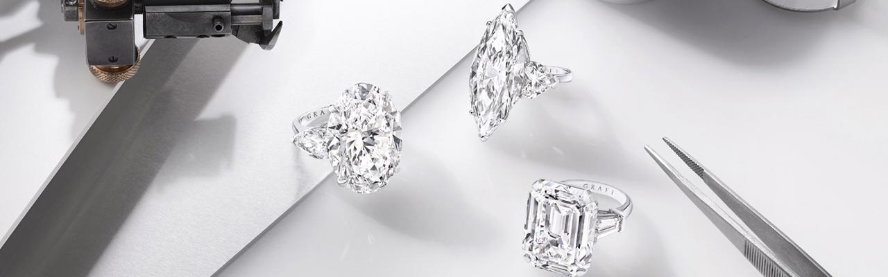 珠寶展的焦點當數幾顆D色的臻美白鑽戒指,包括重達23克拉的枕形切割鑽石戒指,20克拉的祖母綠形切割鑽石戒指和18克拉梨形鑽石戒指純美璀璨的鑽光令人嘆為觀止。由彩色寶石交織而成的絢麗視覺饗宴,也體現格拉夫對彩色寶石的熱愛,其中共重27.62克拉的彩鑽耳環,和20克拉的祖母綠形艷彩黃鑽戒指互相輝映。而重44克拉的枕形切割藍寶石散發柔和而深邃的色澤,必定教鑑賞家為之心動不已。