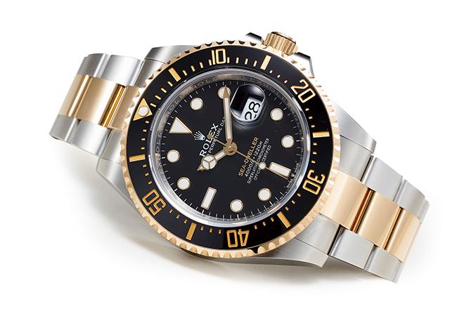 過去Sea-Dweller錶款比較被認為是專業人士的用錶,結構厚重又比較貴。因此,受歡迎的程度不如Submarine錶款,長久以來Sea-Dweller只有推出不鏽鋼款。但是在今年,勞力士首度推出半金、也就是黃金鋼款(蠔式鋼與18ct黃金的組合),這是Sea-Dweller錶款問世50多年來,首次採用18ct黃金材質;所以,廠方還特別將面盤上的Sea-Dweller字樣,改用金色字體。錶款內部同樣是搭載3235自動機芯,通過頂級天文台精密時認證。43mm/不鏽鋼、18ct黃金/參考價NTD 533,000