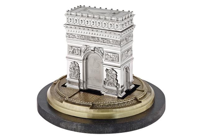 S.T. Dupont與藝術品珠寶商Phillippe Tournaire、Luis Alberto、Krill合作,向其75周年打火機致敬,代表著工作坊永恆的火之藝術。巴黎凱旋門,位於法國巴黎的戴高樂廣場中央,香榭麗舍大街的西端。是拿破崙為紀念1805年打敗俄奧聯軍的勝利,於1806年下令修建而成的。巴黎12條大街都以凱旋門為中心,向四周放射,氣勢磅礴,為歐洲大城市的設計典範。在凱旋門兩面門墩的牆面上,有4組以戰爭為題材的大型浮雕:「出征」、「勝利」、「和平」和「抵抗」,雕刻在拱門頂部的是於大革命期間和拿破崙時期戰勝的史蹟。巴黎凱旋門高級訂製打火機象徵著品牌歷史上第75個年頭的打火機慶典,結合最精湛的Tournaire和品牌工作坊的工藝。