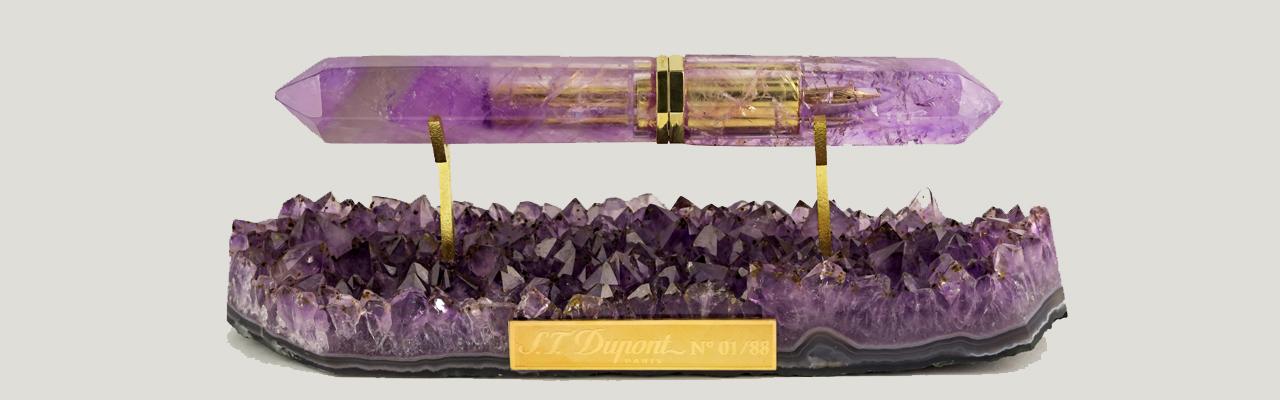 S.T. Dupont與著名的珠寶大師Luis Alberto, L’Aquart and Maison合作,Luis Alberto工作室最著名的雕刻以紅寶石最為著名,而紅寶石的雕刻需要前瞻的技術與手工程序,S.T Dupont幸運寶石系列中一款寶石靈感來自蝴蝶,將毛毛蟲蛻變蝴蝶的過程,譬喻夢想形成的過程,蝴蝶胸針為14K白金鑲嵌1.3克拉藍寶石與彩色碧璽打造,搭配14K白金碧璽耳環以及來自那米比亞的玉髓蝶蛹鋼筆,S.T. Dupont藉由作品追尋無極限的夢想,盡情享受蝴蝶翩翩的浪漫幻想。