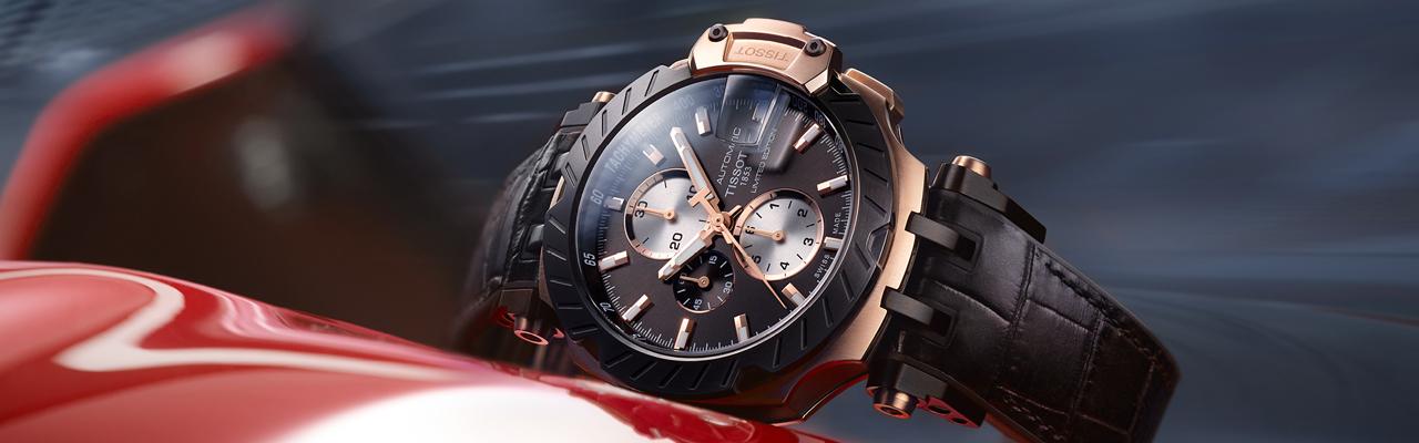 T-Race MotoGPTM 2019自動腕錶綴有奢華細節,證明運動風格與優雅氣息可以並存。品味出眾的錶面配備玫瑰金色計時盤和時標,精緻且霸氣;錶殼覆有相襯的玫瑰金色PVD塗層,再配上黑色PVD塗層錶圈,型格十足。今年特別使用鱷魚皮覆於耐久的橡膠之上,複合材質的錶帶設計令這款霸氣十足的運動腕錶增添幾分優雅氣息。全球限量3333枚,值得MotoGPTM 賽車迷珍藏。