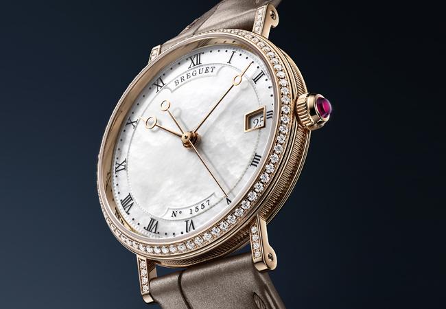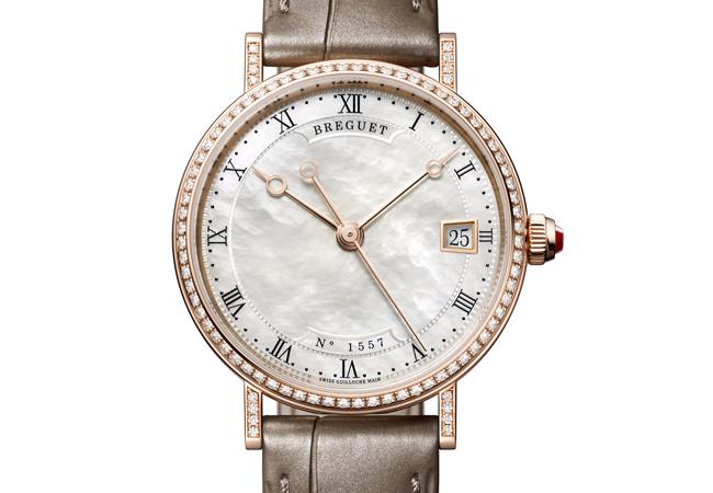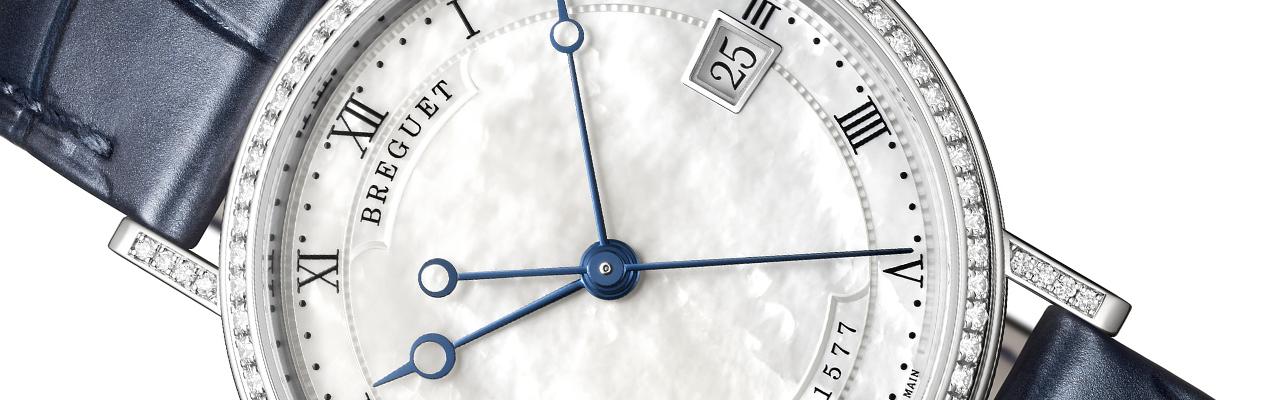 Classique 9068腕表首次配備天然珍珠貝母表盤,彰顯寶璣BREGUET製表藝術的格調。1775年,亞伯拉罕-路易‧寶璣先生(Abraham-Louis Breguet)於巴黎設立工坊。他的作品與當時流行的巴洛克風格大相徑庭,其設計令人驚喜,賞心悅目而一絲不苟。寶璣風格薈萃新古典主義,並以可靠的機械結構為特點,因而獲得顯赫客戶的青睞,包括瑪麗.安東尼皇后(Queen Marie-Antoinette),以及爾後的約瑟芬皇后(Empress Joséphine)、威靈頓公爵夫人(Duchess of Wellington)…等等。全新Classique表款同樣追求簡約風格,精緻的玫瑰金或白金表殼內飾以白色珍珠母貝,令作品更顯動人。金質表圈和連接表帶的表耳鑲嵌88顆圓形切割鑽石,盡現璀璨美態。腕表搭載寶璣自動上鍊機械機芯,具備不可或缺的功能,包括中央秒針和設於3時位置的日期顯示窗。