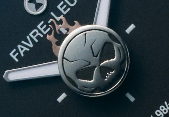 Favre-Leuba域峰亞洲限定概念款 Deep Blue Passion 腕錶, 限量28只。此款腕錶,以Deep Blue系列經典設計元素為原型,枕型錶殼、14邊型上圈、立方形時標,厚蓋延續品牌至中設計,搭配限量編號。品牌自1960年代採用的鮮明橘色也被應用於整體視覺層次,精緻火焰骷髏秒盤,象徵生生不息製錶熱情;秒針,為機械腕錶動能持續的視覺暗示,以骷髏代錶重生概念應用於秒盤,上鍊後運走動態傳遞一款腕錶生命力。而強調實用性功能為導向的域峰,在Deep Blue系列同樣考慮到配戴時的判讀性與潛水功能實用性。尺寸精巧秒針盤原本就在系列廣泛被應用,目的是取代傳統長型秒針,減少水下判讀誤差。