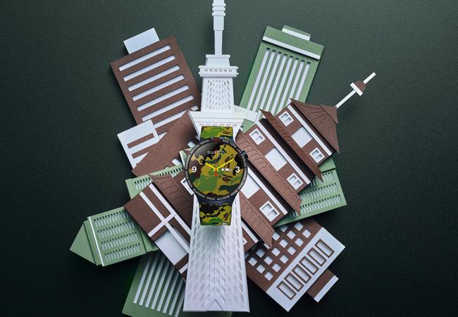 裹原宿潮流元老級品牌「A BATHING APE」,以其超高辨識度地獨特猿人LOGO及迷彩圖騰設計備受矚目,一直被視為日本時裝及潮流界的代表。這一回,身為地表最會玩錶的品牌SWATCH以旗下新推出的街頭霸主系列BIG BOLD為先鋒,將 47 毫米的醒目大直徑錶殼化為此次限量版系列腕表的腕間畫布,並找上日本潮流元祖一舉玩進潮牌圈。雙強霸王聯手果然話題性十足,攜手推出六款全新限量版腕表,以兩個品牌都鍾愛的全球城市為主題,展現對全球化世界的熱愛。