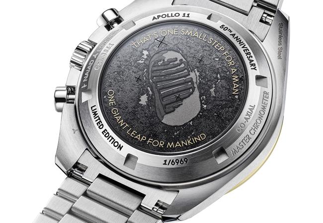 這款限量版腕錶僅發行6,969只。驕傲的錶主會發現底蓋鐫刻了他們的獨一無二編號,以及「APOLLO 11」(阿波羅11號)、「50th ANNIVERSARY」(50週年)與「LIMITED EDITION」(限量版)字樣。不鏽鋼上也有鐫刻字樣,包括「NAIAD LOCK」(Naiad Lock旋入式鎖定系統)、「Cal. 3861」(3861機芯)與「CO-AXIAL MASTER CHRONOMETER」(同軸擒縱大師天文台腕錶)。