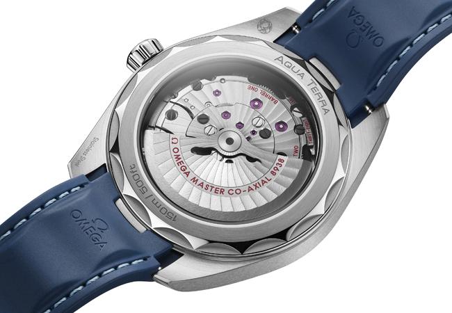 43毫米磨砂與拋光錶殼以不鏽鋼製成,而且現在透過堅固的拋光鏈節整合此錶的藍色橡膠錶鏈。這個設計源自歐米茄核心Aqua Terra錶款的風格。