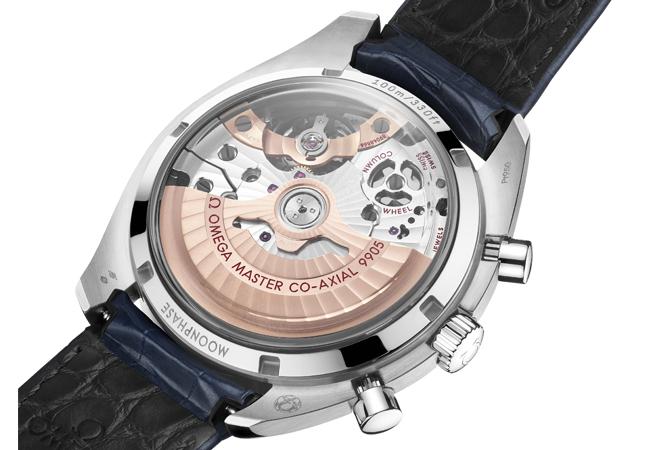 透過藍寶石水晶底蓋,佩戴者可欣賞歐米茄9905同軸擒縱大師天文台認證機芯。除了獲得瑞士聯邦計量科學研究所(METAS)的官方認證,此機芯還具備獨特奢華裝飾,在自動盤與擺輪橋板使用18K Sedna金。