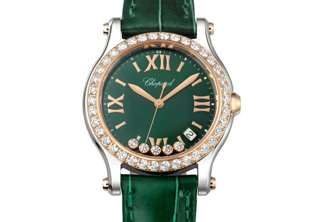 蕭邦CHOPARD L’Heure du Diamant腕錶精彩演繹六十年代風格,散發充滿青春活力的嶄新奢華氣韻,突顯蕭邦精湛絕倫的高級珠寶工藝和手工製錶技藝,向品牌對雋永現代精髓的不懈追求致敬。L’Heure du Diamant透過八款全新高級珠寶腕錶,令時光呈現精緻優雅的嶄新氣象。這些錶款配備寶石和寶石錶盤,重新演繹六十年代風格,頌讚品牌傳承50年的精湛珠寶和腕錶工藝。藝術與工藝,藝術與科學,傳統與現代在此和諧交融。蕭邦經典Happy Diamonds系列,以代表環境用續的綠色珍珠母貝,呈現品牌重視環境保育的價值。