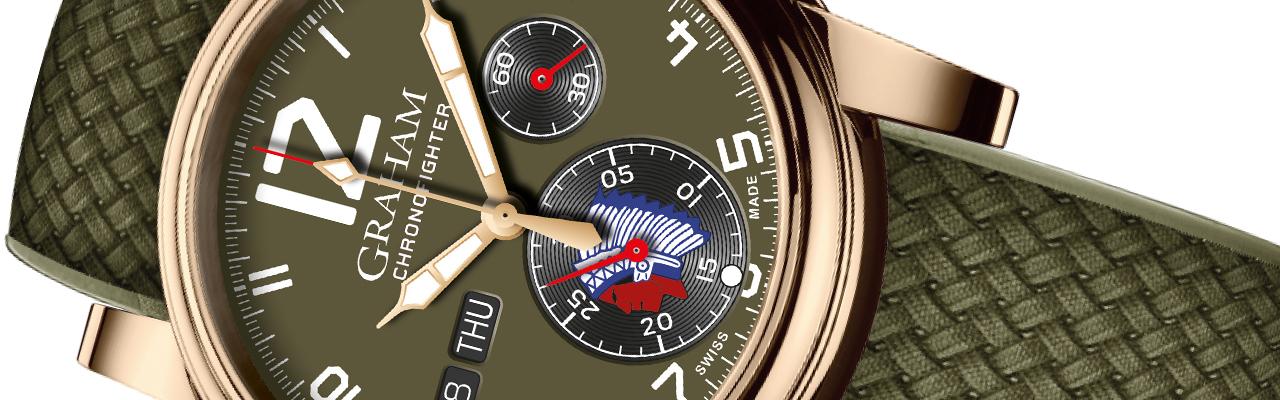 Chronofighter Vintage Overlord 的名稱取自諾曼地登陸戰役的代號“霸王行動” (Overlord),包括搶佔五大海灘。拉絲-磨砂青銅錶殼讓人想起海軍設施使用的金屬。綠色噴砂錶盤上的復古數位採用美國空軍飛機機身上所用數位的字體。六點鐘位置設計了印第安酋長頭像,是美國軍隊知名的標誌之一,以藝術的方式呼應美國陸軍第二步兵師。條紋織物錶帶飾以寶石綠色邊緣,代表“霸王行動”中所有參與者共同對未來和平的祈願。此外,為了更進一步表達對那場戰爭的紀念,Graham 將把腕表收入的一部分捐獻給諾曼第的一些博物館,以此致敬因戰爭而英勇犧牲的士兵們。每一款腕表都將限量發行75 枚——這75 年中的每一年都好比一座里程碑,值得人們永遠銘記。