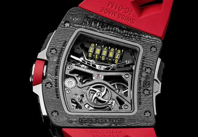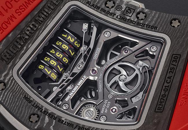 RICHARD MILLE為昔日曾四次奪得一級方程式賽車世界冠軍的Alain Prost,打造首款能累計里程數的RM 70-01陀飛輪腕錶,不僅可計算騎乘自行車的總里程數,也具備簡易的時間提示功能。RICHARD MILLE不只嘗試各種創新材質的運用,與運動賽事的緊密結合,也是提升品牌知名度方式之一。不過RICHARD MILLE在2017年底推出的RM70-01 Tourbillon Alain Prost,採用首創的機械里程表,但它並不是為現役某位運動選手所研發,其設計的靈感來源,是與Richard Mille先生同樣喜好賽車的艾倫‧保魯斯Alain Prost。