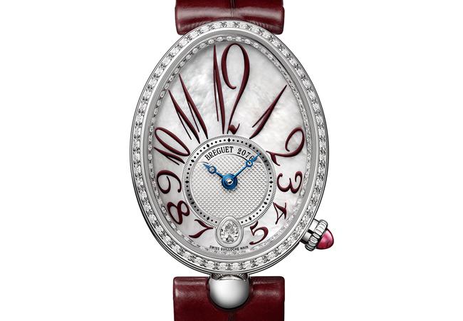 堪稱最佳女錶的那不勒斯王后系列不論是換上什麼色彩都很好看。石榴石紅配色的8918在現場就得到一致的好評。全錶鑲嵌118顆美鑽,針盤為金質鍍銀。內置537/3自動機芯。36.5 x28.45 mm/18K白金/參考價NTD 1,163,000