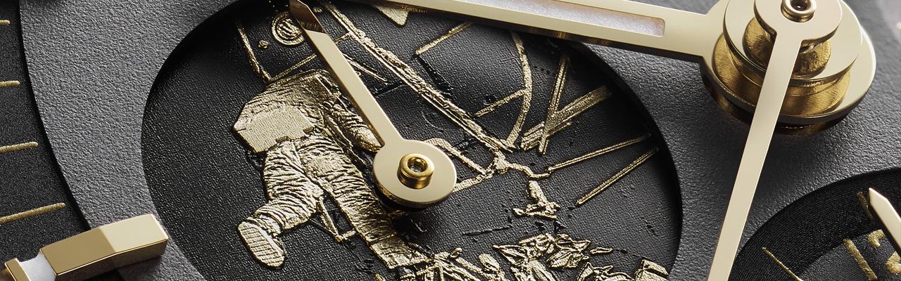本款腕錶是復刻1969年登月成功後,歐米茄所生產的超霸登月錶黃金BA 145.022款,因為其中有26只是贈送給NASA的登月太空人。如今的復刻錶款採用全新的3861機芯,而錶殼、鍊帶與面盤則是用顏色較淺的特殊黃金材質製作。42mm/18K Moonshine™金/限量1014只/參考價NTD 1,130,600