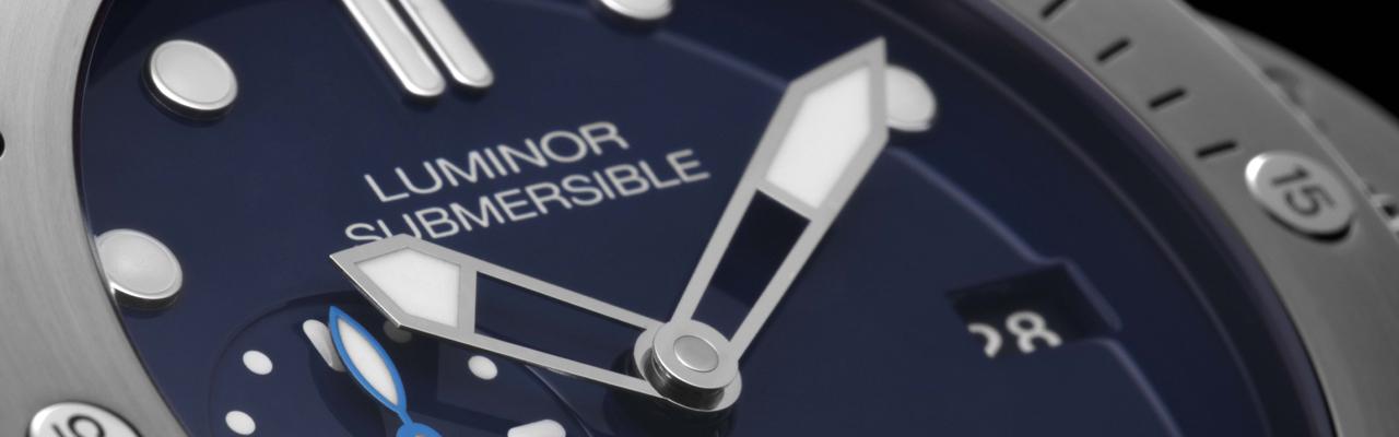 藍色錶盤上的清晰時標,以全新拋光效果潤飾,營造迷人的折射效果;而且不論光線充足與否,甚至置身黑暗中,同樣易於讀取,全賴時標採用兩種不同Super-LumiNova夜光塗層,方便區分常規時間及潛水時間。P.9010自動上鏈機芯由沛納海高級製錶廠自主研製,配備三日動力儲存。機芯由200個零件及31顆寶石組成,直徑13¾法分,厚6毫米,令錶殼厚度得以縮減。除此之外,時針以獨立裝置驅動,以小時為單位向前或向後跳動,快捷地進行調校,而不會影響分針的走動。此功能對轉換時區或夏令及冬令時間的調整而言十分實用,特別是調整時間時,日期可按需要進行調整。
