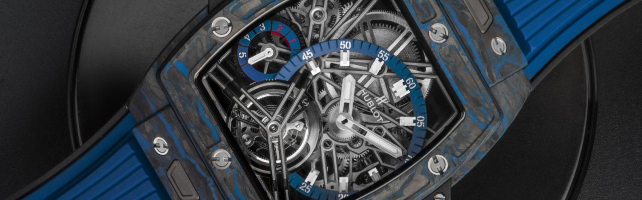 酒桶型的Spirit of Big Bang今年有了重大變革,除了少見的混雜藍色紋理的藍色碳纖維外,過往用於Big Bang系列的單鍵快拆錶帶結構也首度引入此系列中。此外,內裝動力儲存達五日的HUB6020機芯,這也是品牌首度為酒桶錶殼量身打造的陀飛輪機芯,工業風格著實特別。不只專屬,也不難想見系列日漸重要的地位。