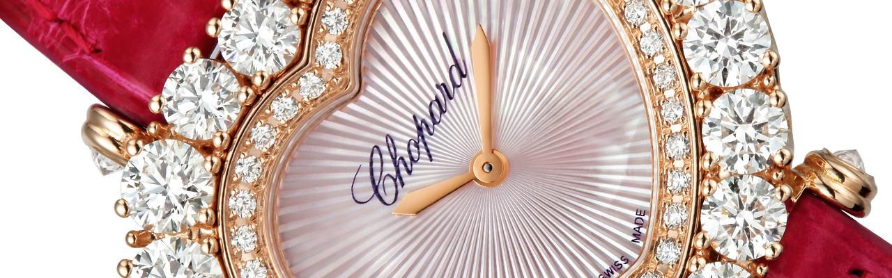凝聚蕭邦工作坊30多種頂級技藝,再次展現品牌精湛的製錶與珠寶工藝。透過蕭邦錶廠工匠們嫻熟、耐心而富有創造性的巧手,耗費數百個工時,精雕細琢之下,使不同技藝間相輔相成成為可能,創造出如夢幻逸品般的珠寶傑作。今年蕭邦將全新的愛心錶殼昇華,L’HEURE DU DIAMANT系列使用雙錶圈鑲鑽來提升象徵愛情與家族的符號,以蕭邦爪鑲工藝和手工雕刻放射紋路粉紅色珍珠母貝錶盤製成,綴以鑲嵌72顆總重6.2克拉鑽石,錶耳以及錶冠皆鑲嵌鑽石,搭配猶如繁星閃耀的20顆鑽石圍繞錶殼,賦予腕錶華麗而感性的獨特風韻,使鑽石呈現高貴而洗鍊之迷人風格。