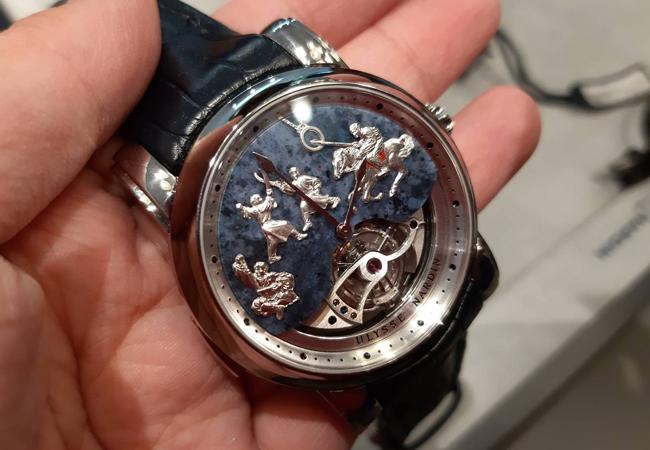 這款腕錶源自於對成吉思汗的尊崇,材質選用鈦金屬,擁有陀飛輪及西敏寺鐘樂三問報時功能,並可敲擊Mi-Do-Re-Sol四種不同音調,錶盤上精雕細琢的白金活動人偶,皆由雕刻大師花費超過40小時以上,以手工悉心打造,滿足藏家在視覺與聽覺上的雙重享受,是一件獨一無二的藝術品。該錶款為旗艦店特別款,限量一枚。